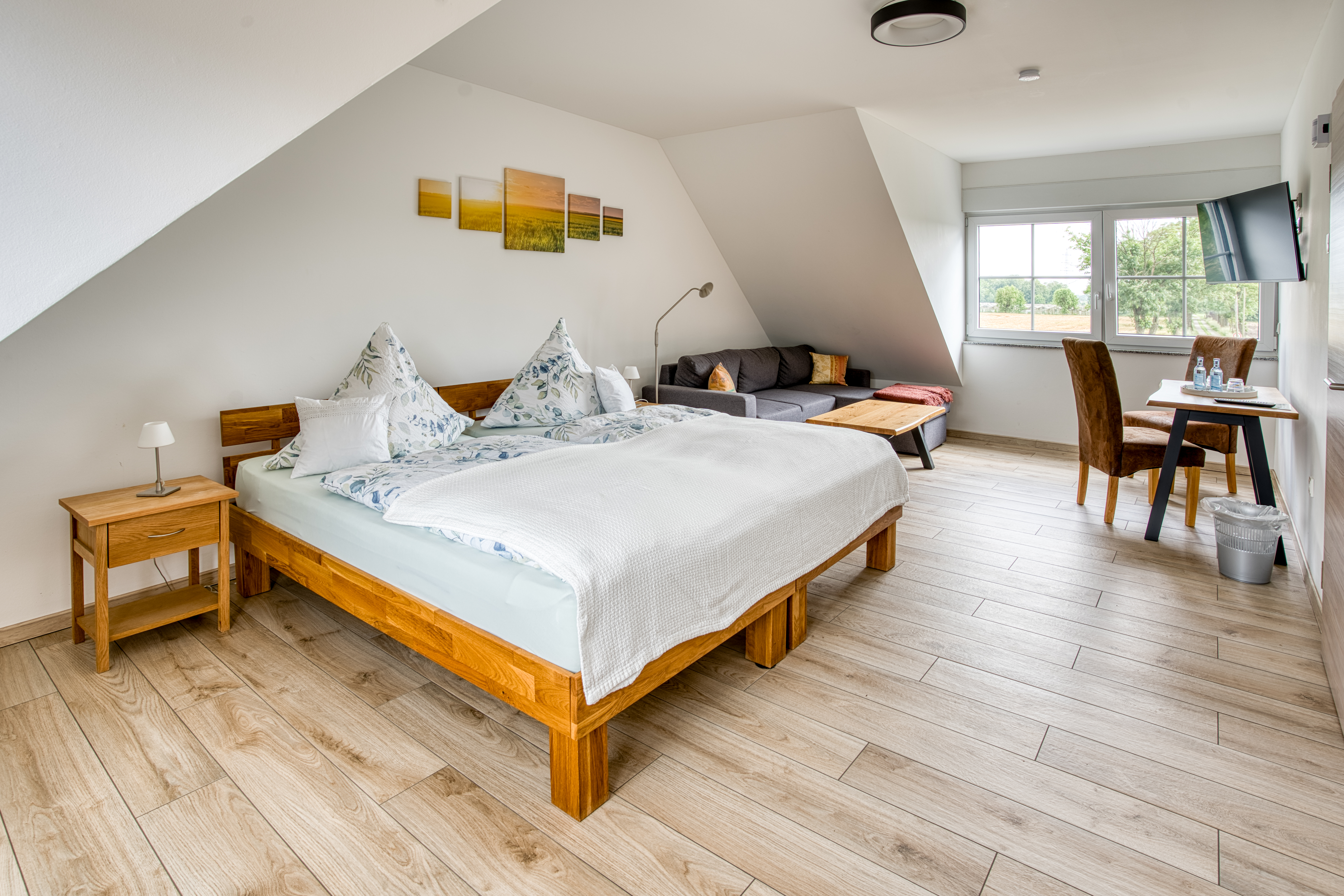 Unsere gemütlichen Doppelzimmer bieten auf ca. 25 m² eine behagliche Atmosphäre für zwei Personen. Ausgestattet mit einem komfortablen Betten, einem modernen Bad mit Dusche sowie einer kleinen Sitzecke, laden sie zum Entspannen ein.